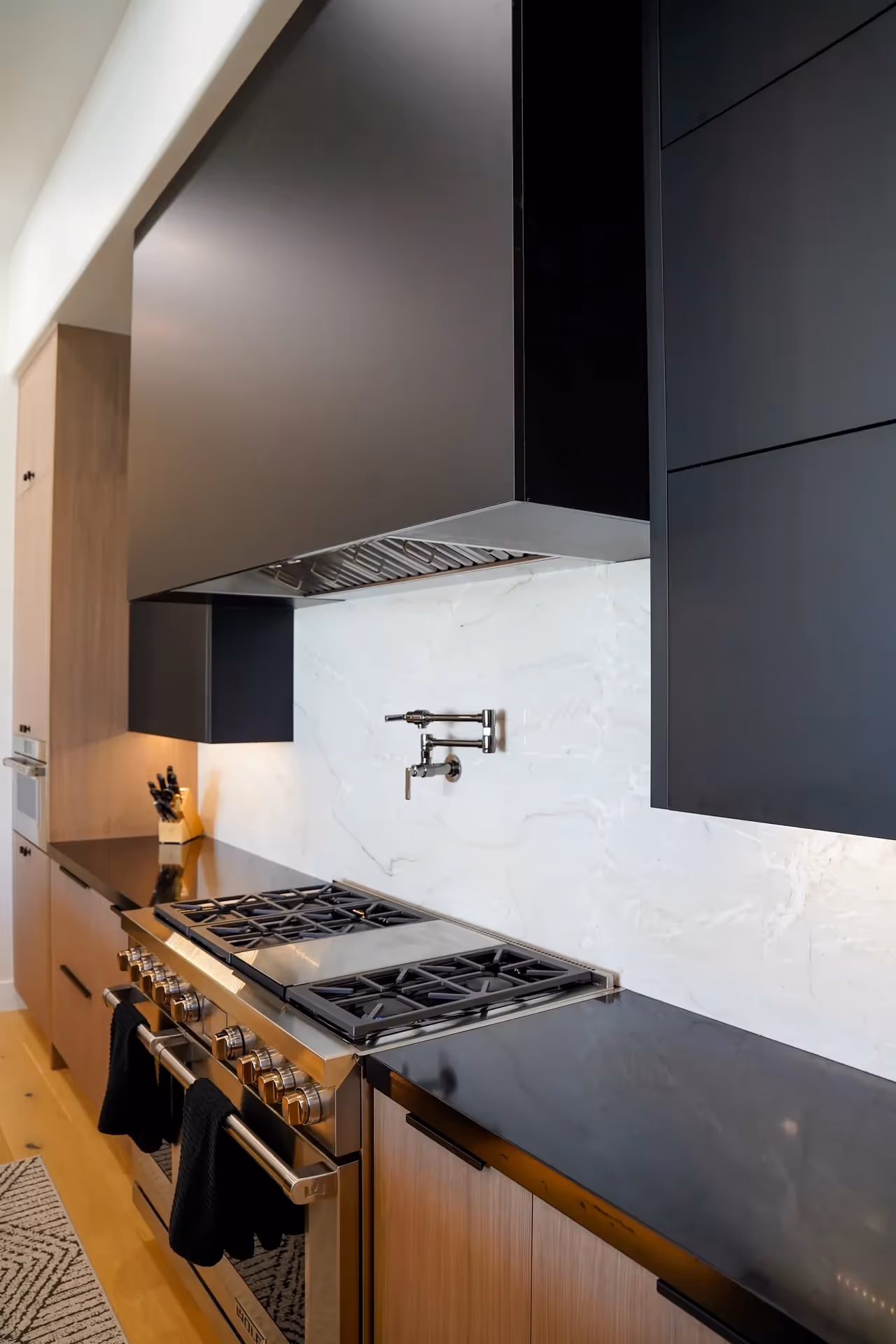 Natural materials and clean lines carry through every room, giving the entire home a rich, cohesive warmth. The result is a refined modern retreat that feels fresh, custom, and built for how the owners live today.