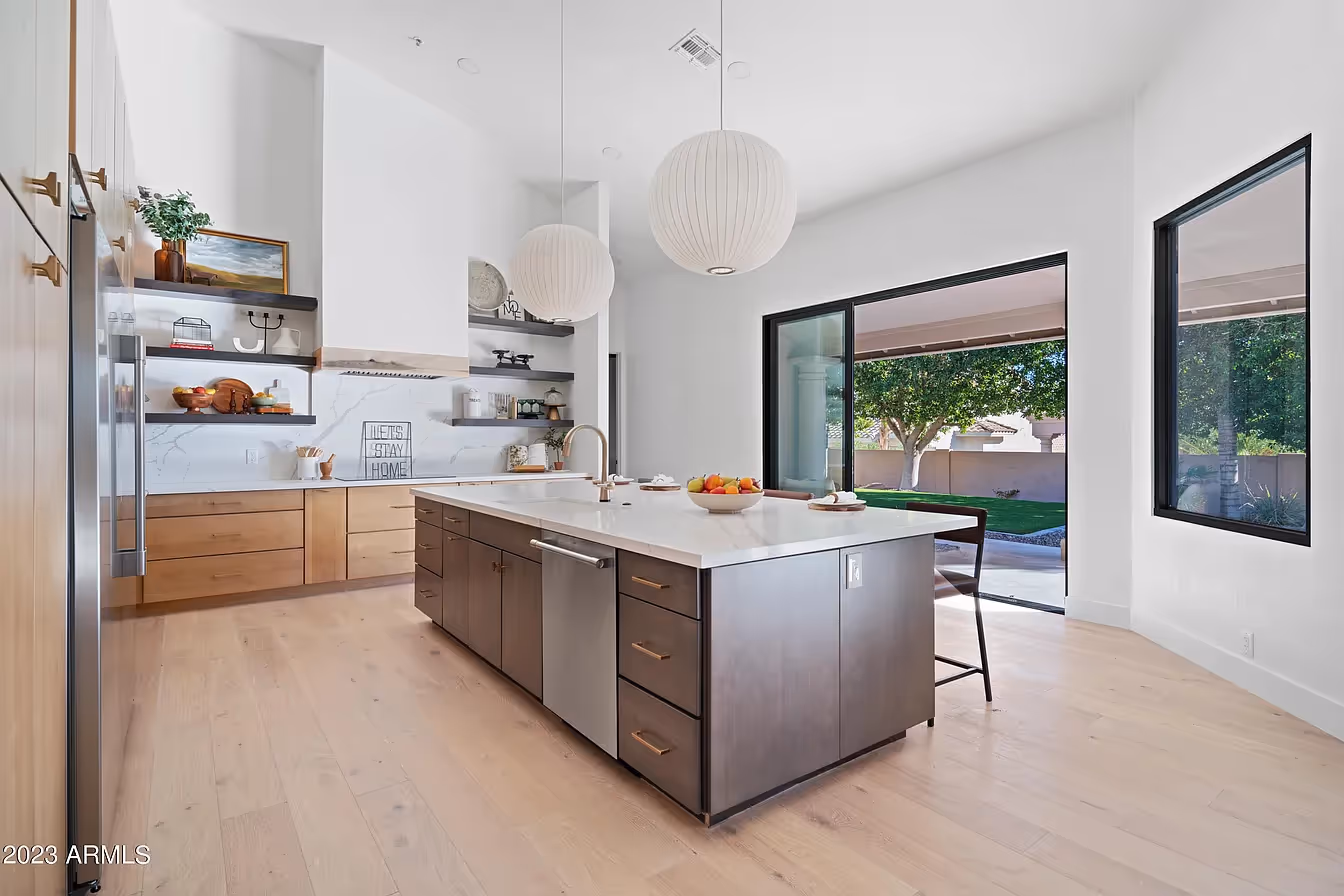 This home started with the same heavy finishes common in the neighborhood, and the goal was to make it feel lighter, warmer, and more open.